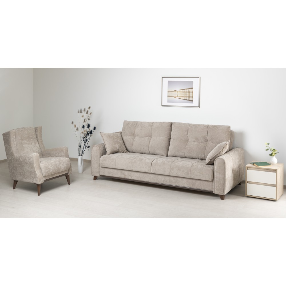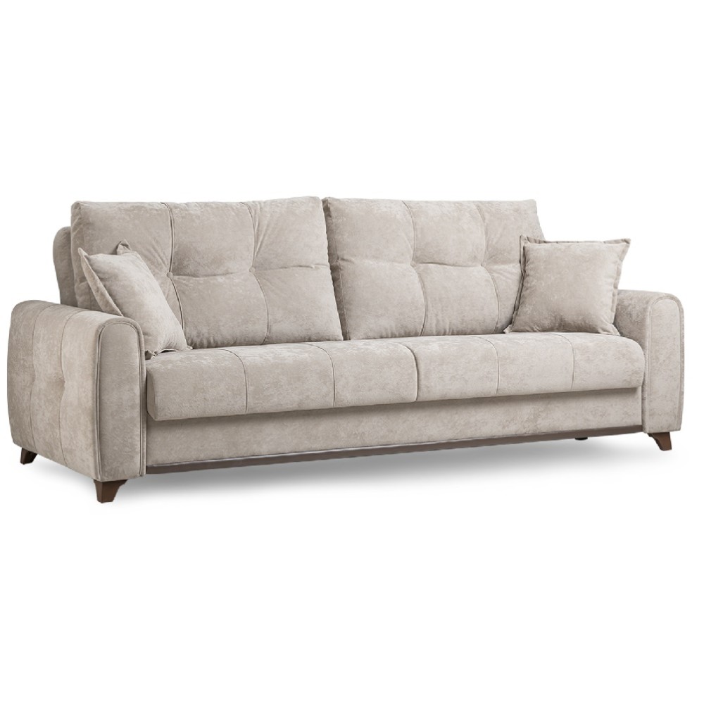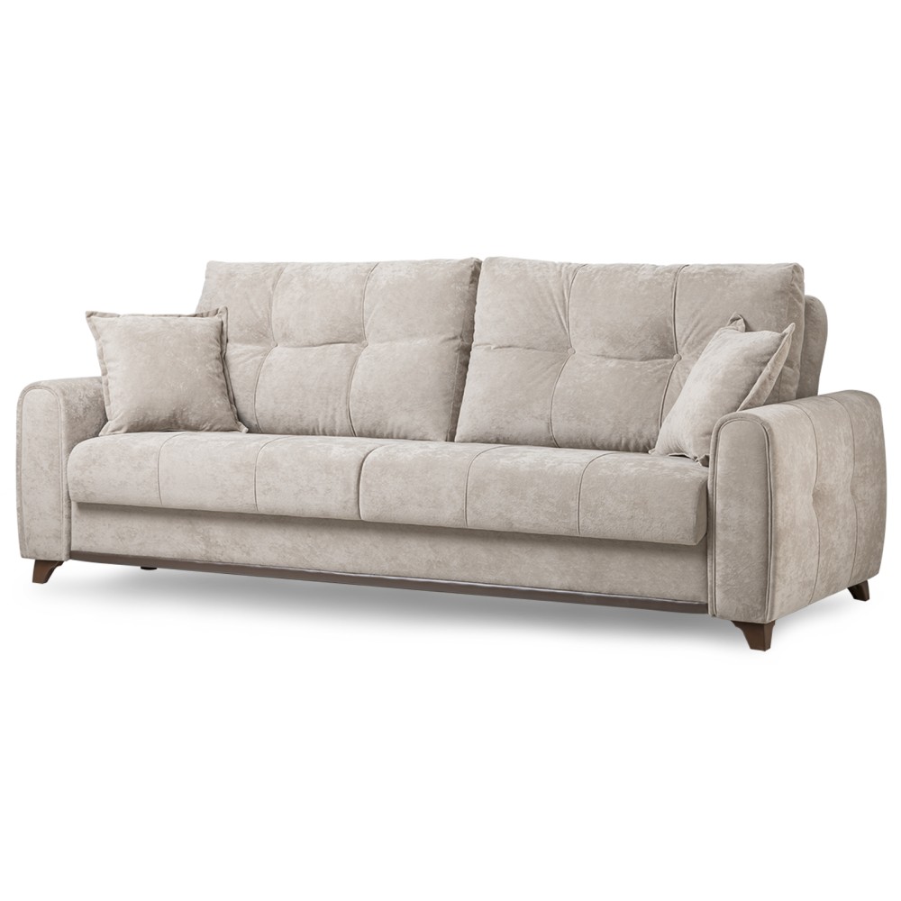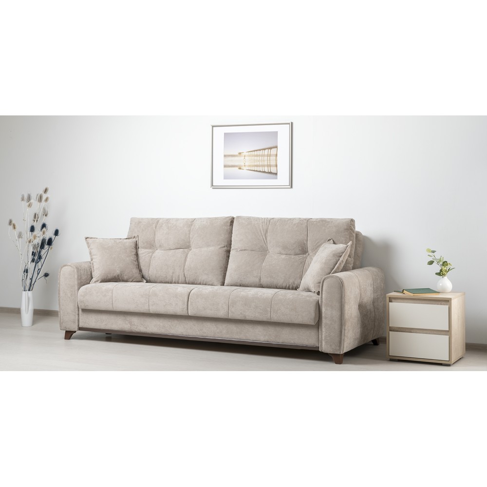 Плимут — это современный диван с комфортной посадкой, который может быть дополнен креслом Плимут. Он удачно впишется в любой современный интерьер благодаря своему универсальному дизайну и трендовым цветам обивки. При раскладывании этот диван не требует отодвигания от стены, обеспечивая полноценное ровное спальное место для двух человек.