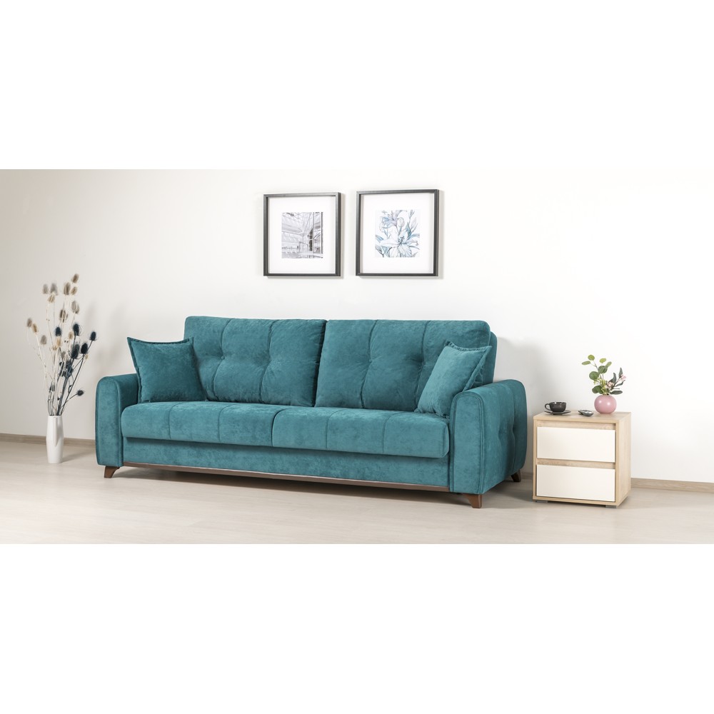 Плимут — это современный диван с комфортной посадкой, который может быть дополнен креслом Плимут. Он удачно впишется в любой современный интерьер благодаря своему универсальному дизайну и трендовым цветам обивки. При раскладывании этот диван не требует отодвигания от стены, обеспечивая полноценное ровное спальное место для двух человек.
