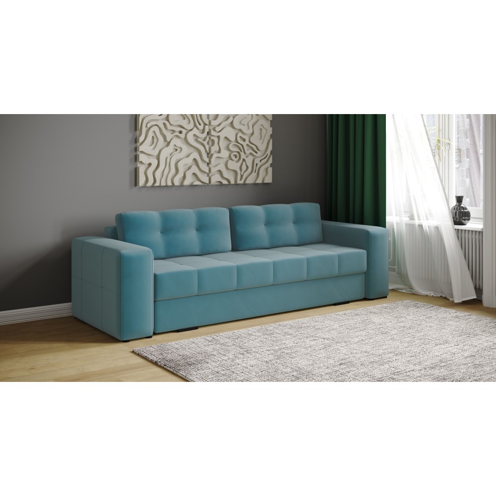 Диван раскладной Верден – это идеальное сочетание комфорта и стиля. Обивка из мягкого и приятного на ощупь велюра придаёт ему элегантный вид, а также обеспечивает тепло и уют в любое время года. Диван легко трансформируется в просторное спальное место, что делает его отличным вариантом для гостиных или студий.