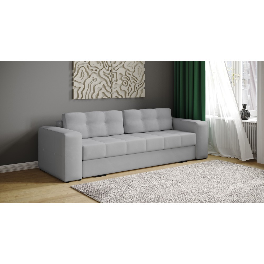 Диван раскладной Верден – это идеальное сочетание комфорта и стиля. Обивка из мягкого и приятного на ощупь велюра придаёт ему элегантный вид, а также обеспечивает тепло и уют в любое время года. Диван легко трансформируется в просторное спальное место, что делает его отличным вариантом для гостиных или студий.