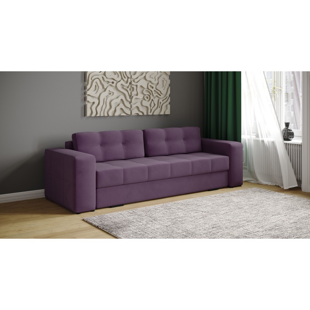 Диван раскладной Верден – это идеальное сочетание комфорта и стиля. Обивка из мягкого и приятного на ощупь велюра придаёт ему элегантный вид, а также обеспечивает тепло и уют в любое время года. Диван легко трансформируется в просторное спальное место, что делает его отличным вариантом для гостиных или студий.