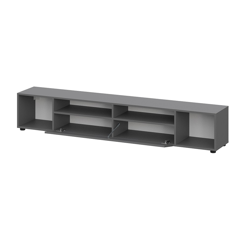 Тумба под телевизор. Она оснащена откидной дверкой, внутри перегородка и полки для хранения различных вещей.