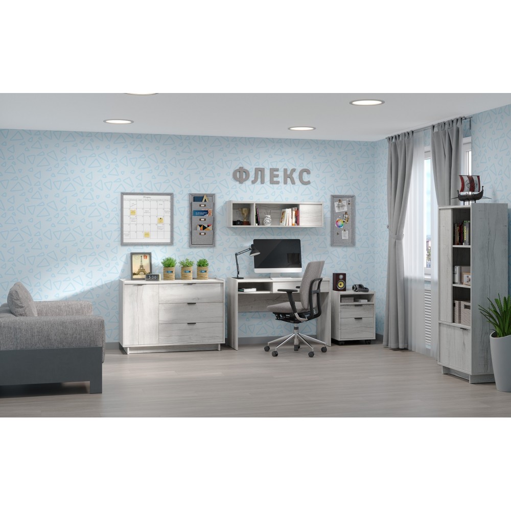 Напольные модули с притопленным цоколем обеспечивают удобство установки и позволяют избежать проблем с плинтусами. Благодаря этому гостиная ФЛЕКС станет идеальным местом для отдыха и релаксации, создавая гармоничную обстановку и поднимая настроение.