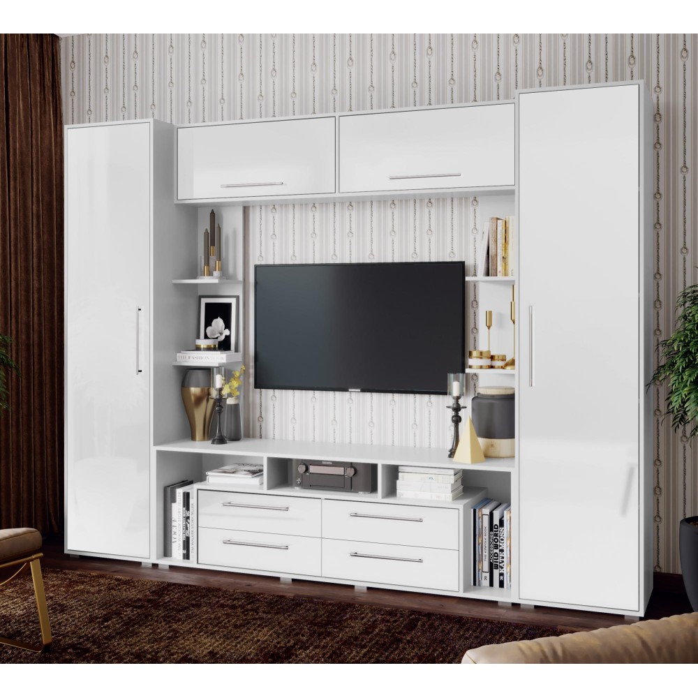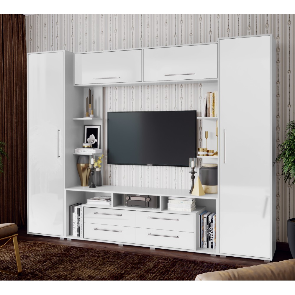Гостиная Гармония - современная модульная система для стильного и удобного интерьера. Шкафы предлагают максимальное наполнение и удобство сборки. Боковые части изделий делают интерьер эстетичным, а роликовые направляющие ящиков обеспечивают комфорт использования.