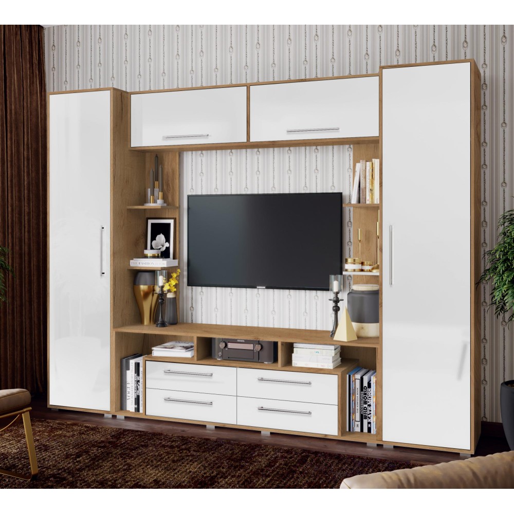 Гостиная Гармония - современная модульная система для стильного и удобного интерьера. Шкафы предлагают максимальное наполнение и удобство сборки. Боковые части изделий делают интерьер эстетичным, а роликовые направляющие ящиков обеспечивают комфорт использования.
