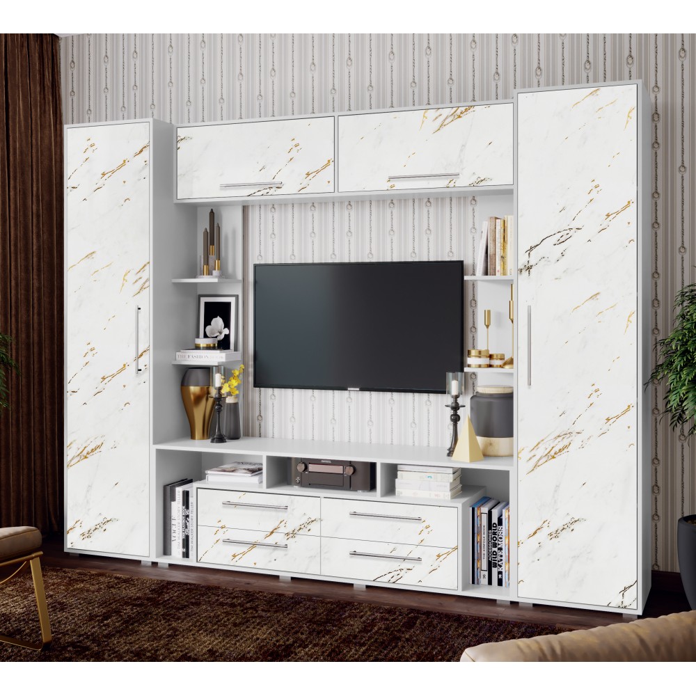 Гостиная Гармония - современная модульная система для стильного и удобного интерьера. Шкафы предлагают максимальное наполнение и удобство сборки. Боковые части изделий делают интерьер эстетичным, а роликовые направляющие ящиков обеспечивают комфорт использования.