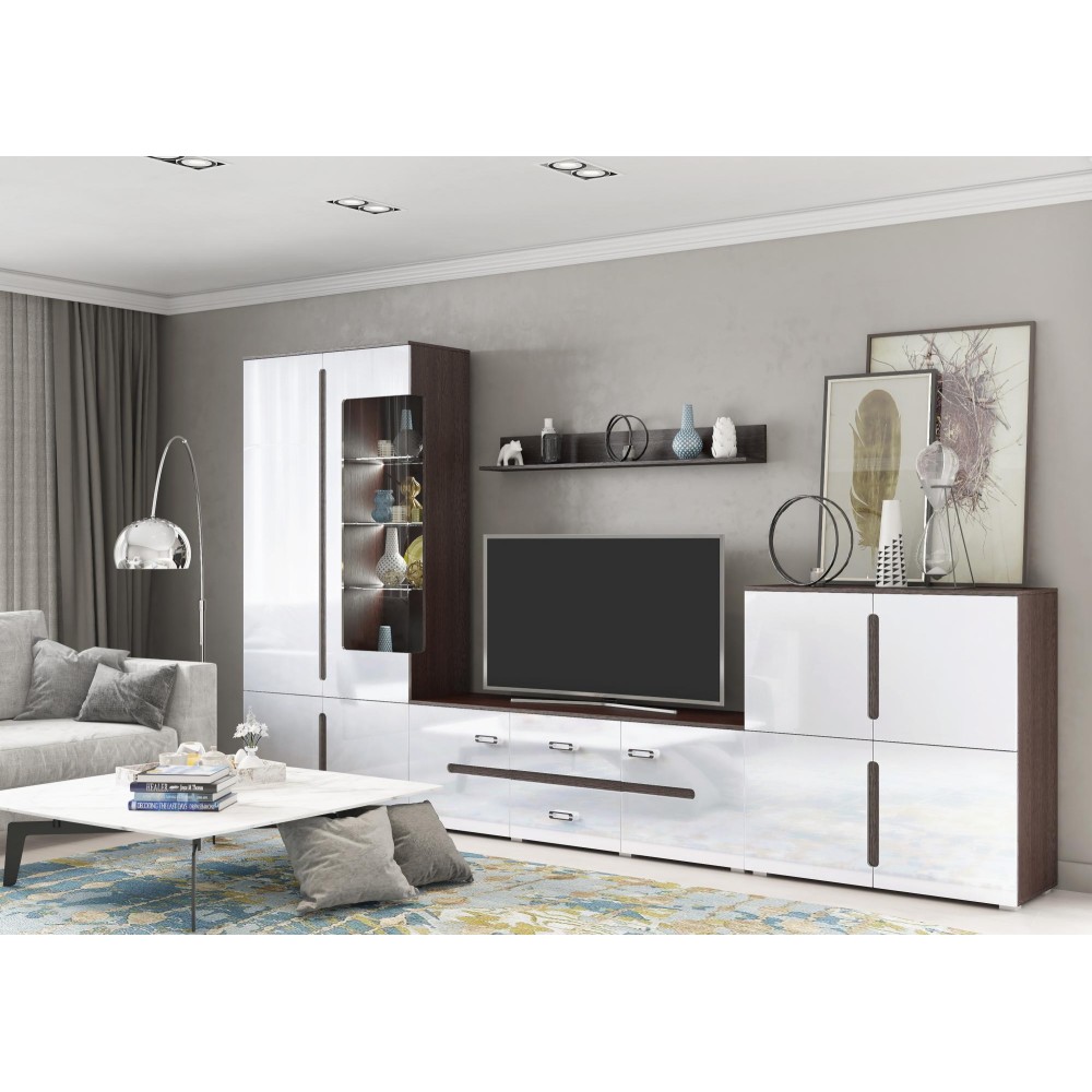 Гостиная Ким - современная модульная система для стильного и удобного интерьера. Шкафы предлагают максимальное наполнение и удобство сборки. Боковые части изделий делают интерьер эстетичным, а роликовые направляющие ящиков обеспечивают комфорт использования.