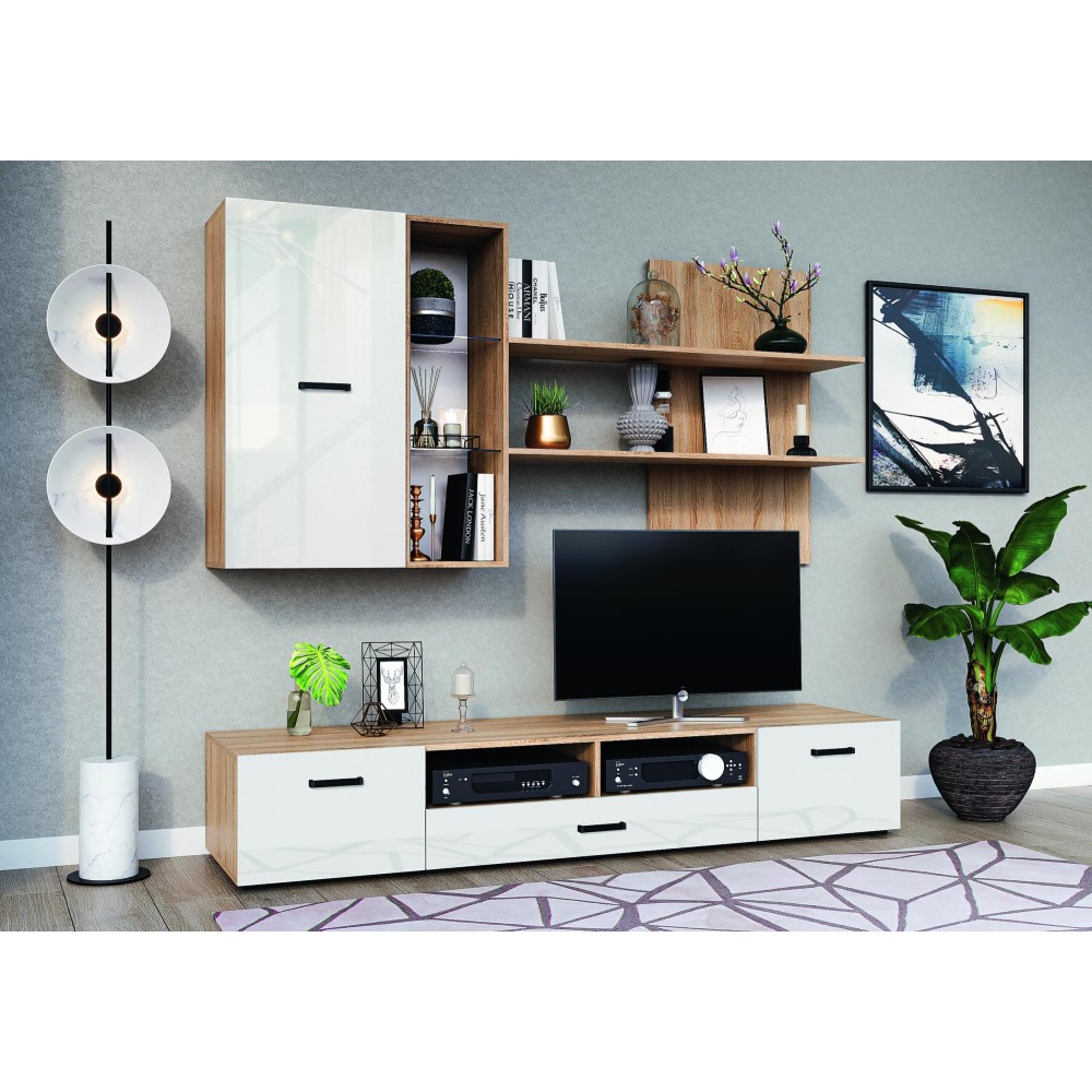 Гостиная Нэнси - современная модульная система для стильного и удобного интерьера. Шкафы предлагают максимальное наполнение и удобство сборки, а шариковые направляющие ящиков обеспечивают комфорт использования.