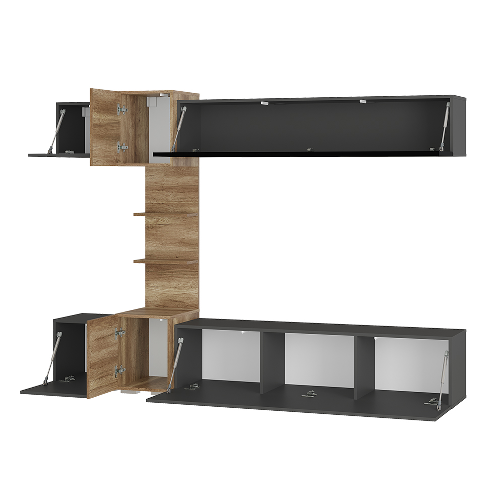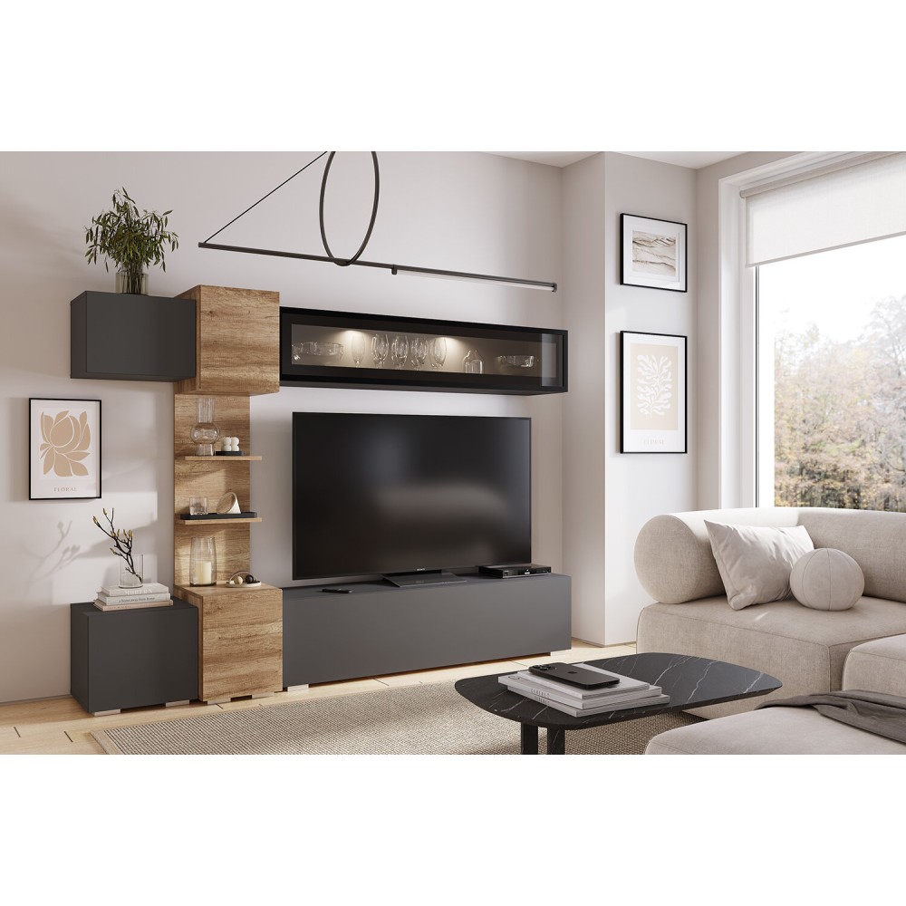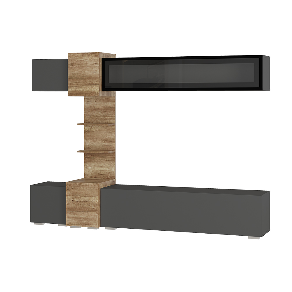 Гостиная Рейн - это минималистичная модель с максимально простыми линиями в эффектном исполнении графит и дуб каньон. Благодаря стеклянному верхнему фасаду и отсутствию лицевой фурнитуры модель выглядит более легко.