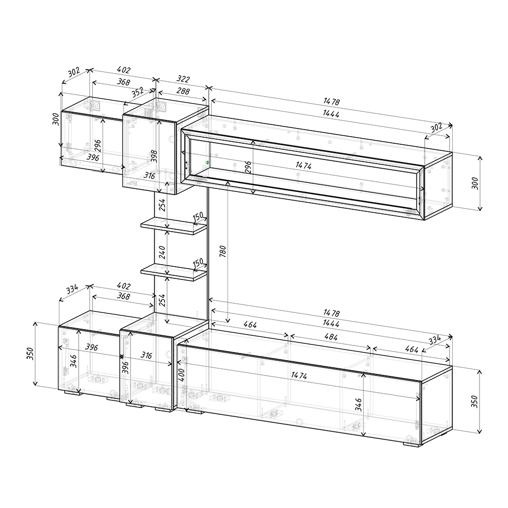 Габаритные размеры (ШхГхВ): 2200х400х1600мм