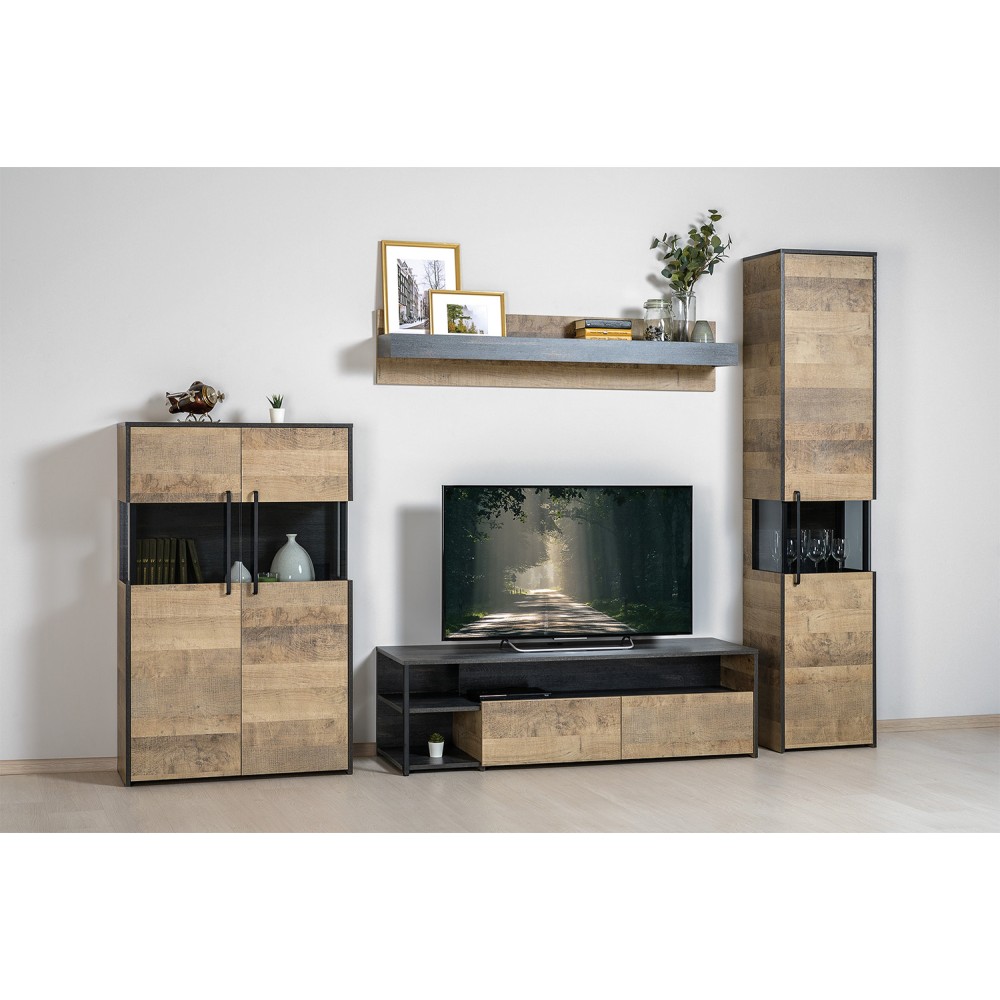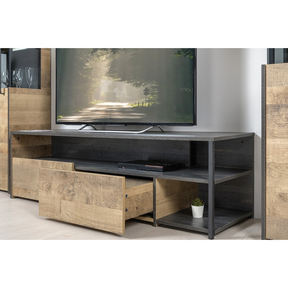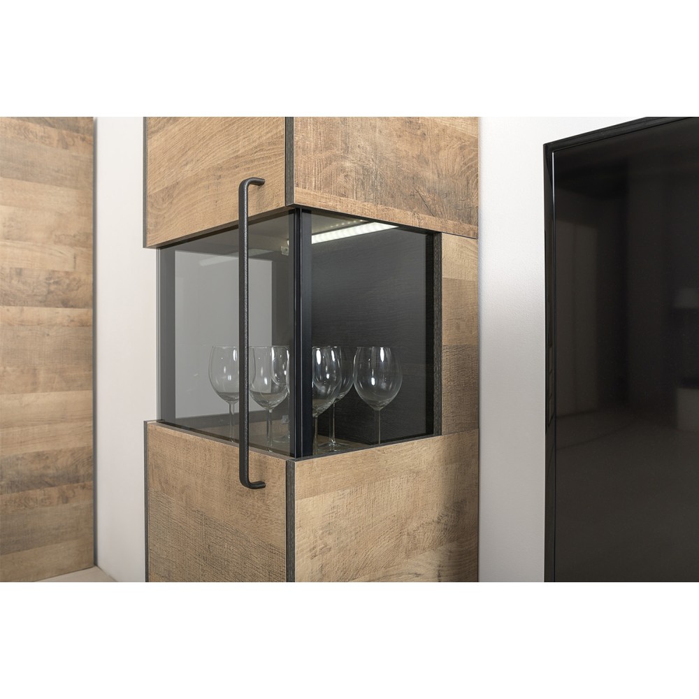 Лицевая фурнитура с тем же покрытием придаёт мебели индустриальную эстетику.