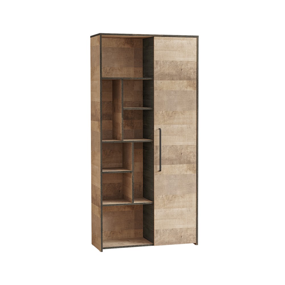 Лицевая фурнитура с тем же покрытием придаёт мебели индустриальную эстетику.