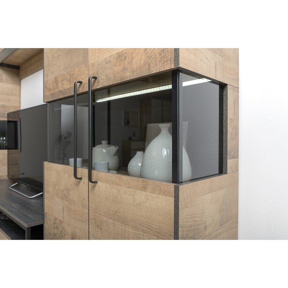 Все петли и направляющие оснащены доводчиками. Светодиодная подсветка в витринах с тонированным стеклом — эффектно подчёркивает аксессуары.
