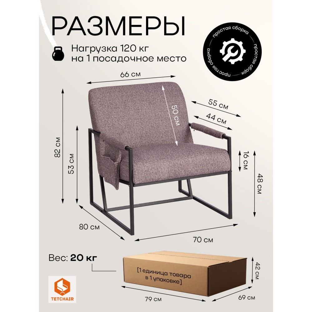Кресло Charli LUX — это истинное воплощение комфорта и современного стиля, идеально подходящее для различных интерьеров. Его прочный металлический каркас обеспечивает надёжность и долговечность, а обивка из износостойкой ткани не только элегантна, но и легко чистится, что делает это кресло практичным выбором для повседневного использования. Лаконичный дизайн в стиле лофт и минимализм позволяют креслу Чарли Люкс гармонично вписаться в любой интерьер, будь то современная гостиная, уютное кафе, изысканный ресторан или стильный офис. Это кресло не только функционально, но и служит ярким акцентом вашего интерьера, подчёркивая ваш вкус и внимание к деталям. Выбирая кресло Charli LUX, вы выбираете стиль, комфорт и качество, которое будет радовать вас долгое время. Основные характеристики. Надежность и прочность: Каркас выполнен из металлического профиля 20*20мм с толщиной стенки 1,5мм, что гарантирует долговечность. Каждый элемент тщательно изготовлен на автоматическом лазерном станке для точной сборки. Уникальный Комфорт: Первое на рынке кресло со смещённой перекладиной в глубину которое не мешает расположению ног, обеспечивая свободу движений. Идеальная отделка: Высококачественное порошковое окрашивание исключает непрокрас и обладает матовой нежной шагренью, что придаёт изделию более премиальный вид. Наполнитель сиденья и спинки состоит из независимого пружинного блока + ППУ высокой плотности это даёт возможность комфортной посадки и быстро восстанавливается. Эргономика для всех: Специально разработанный угол наклона спинки подходит для любой фигуры и обеспечивает максимальный комфорт. Уникальная защита: Первое на рынке кресло со съёмной, тканевой мобильной защитной накладкой подлокотника с одной стороны с другой стороны подлокотник с удобным двойным карманом который гармонично дополняет кресло. Подлокотники являются универсальными, их можно менять местами. Дизайн: Кресло гармонично впишется в любое современное пространство. Простота сборки: Кресло комплектуется пошаговой инструкцией и требует всего лишь 6 винтов для сборки (в цвет каркаса). Компактная упаковка: Упаковка разработана для защиты при транспортировке, кресло поставляется в 5-слойном картоне. Нагрузка 120 кг.