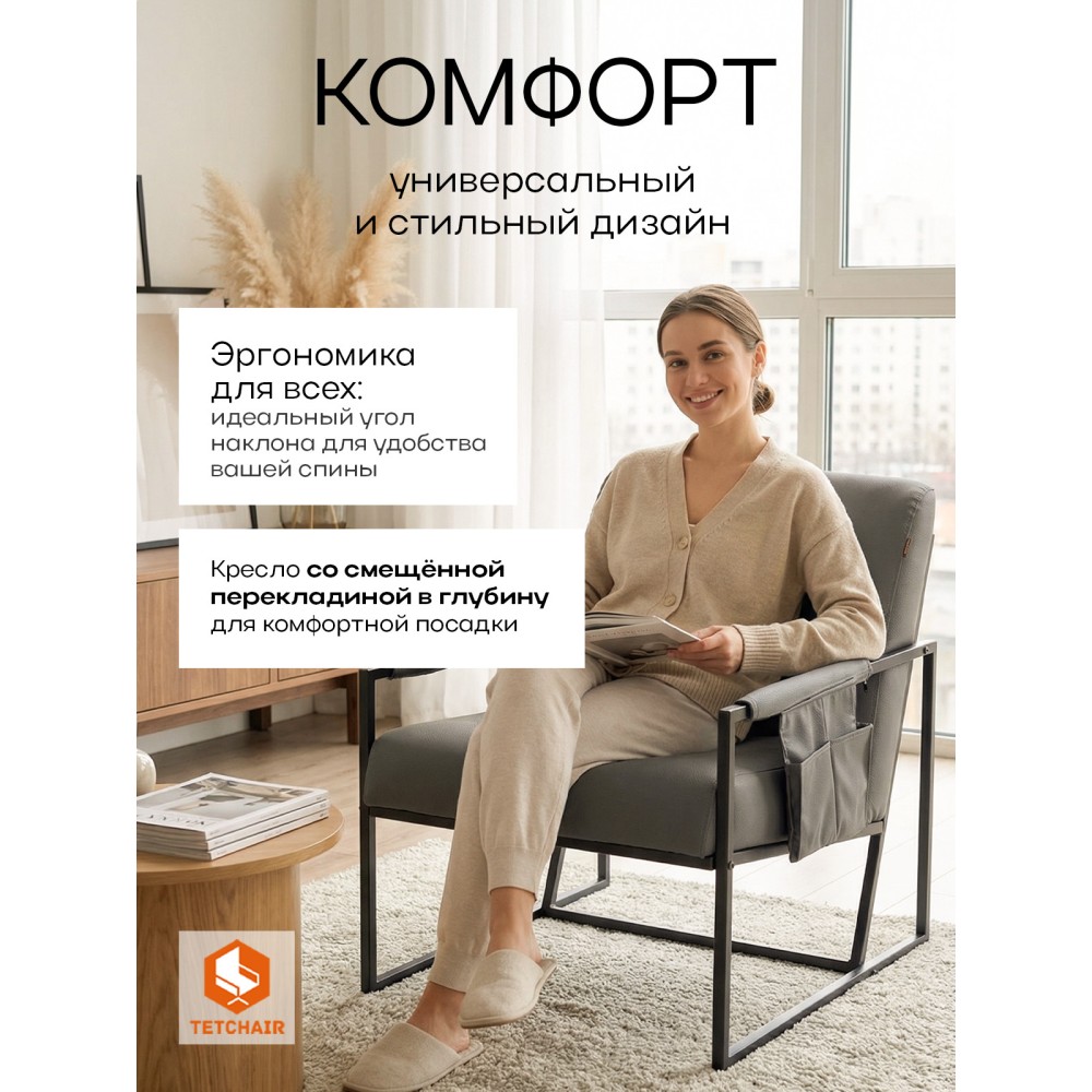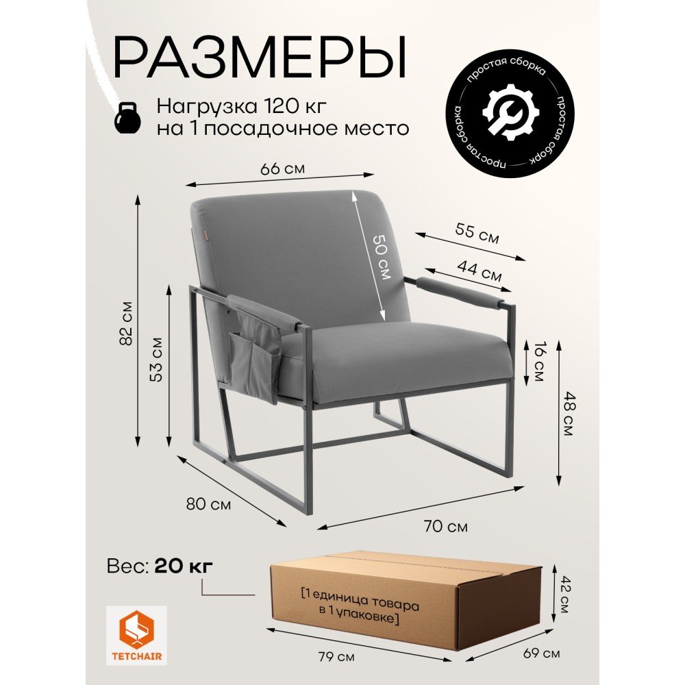 Кресло Charli LUX — это истинное воплощение комфорта и современного стиля, идеально подходящее для различных интерьеров. Его прочный металлический каркас обеспечивает надёжность и долговечность, а обивка из износостойкой ткани не только элегантна, но и легко чистится, что делает это кресло практичным выбором для повседневного использования. Лаконичный дизайн в стиле лофт и минимализм позволяют креслу Чарли Люкс гармонично вписаться в любой интерьер, будь то современная гостиная, уютное кафе, изысканный ресторан или стильный офис. Это кресло не только функционально, но и служит ярким акцентом вашего интерьера, подчёркивая ваш вкус и внимание к деталям. Выбирая кресло Charli LUX, вы выбираете стиль, комфорт и качество, которое будет радовать вас долгое время. Основные характеристики. Надежность и прочность: Каркас выполнен из металлического профиля 20*20мм с толщиной стенки 1,5мм, что гарантирует долговечность. Каждый элемент тщательно изготовлен на автоматическом лазерном станке для точной сборки. Уникальный Комфорт: Первое на рынке кресло со смещённой перекладиной в глубину которое не мешает расположению ног, обеспечивая свободу движений. Идеальная отделка: Высококачественное порошковое окрашивание исключает непрокрас и обладает матовой нежной шагренью, что придаёт изделию более премиальный вид. Наполнитель сиденья и спинки состоит из независимого пружинного блока + ППУ высокой плотности это даёт возможность комфортной посадки и быстро восстанавливается. Эргономика для всех: Специально разработанный угол наклона спинки подходит для любой фигуры и обеспечивает максимальный комфорт. Уникальная защита: Первое на рынке кресло со съёмной, тканевой мобильной защитной накладкой подлокотника с одной стороны с другой стороны подлокотник с удобным двойным карманом который гармонично дополняет кресло. Подлокотники являются универсальными, их можно менять местами. Дизайн: Кресло гармонично впишется в любое современное пространство. Простота сборки: Кресло комплектуется пошаговой инструкцией и требует всего лишь 6 винтов для сборки (в цвет каркаса). Компактная упаковка: Упаковка разработана для защиты при транспортировке, кресло поставляется в 5-слойном картоне. Нагрузка 120 кг.