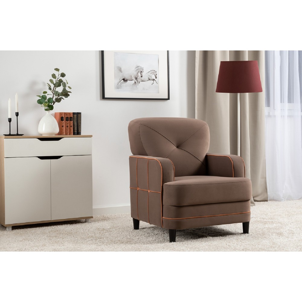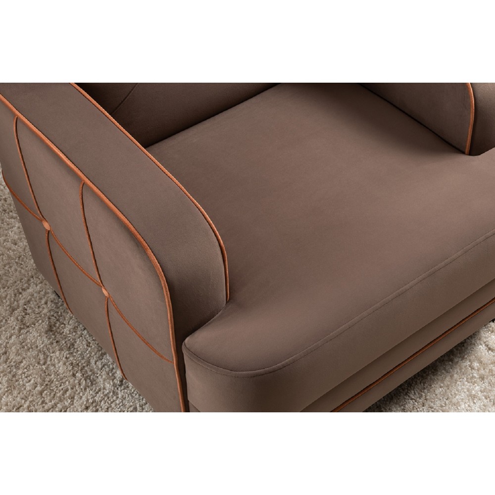 Кресло Черри Н из велюра — отличный выбор для дополнения дивана Черри Н. Бархатистая матовая поверхность материала прекрасно сочетается с различными материалами, такими как кожа, текстиль или дерево, что делает его подходящим для любого стиля интерьера. Кроме того, велюр легко чистится и прост в уходе, что делает его практичным решением для вашего дома. Состав ткани — 100 % полиэстер, плотность — 460 г/кв. м, а количество циклов истирания превышает 50 000.