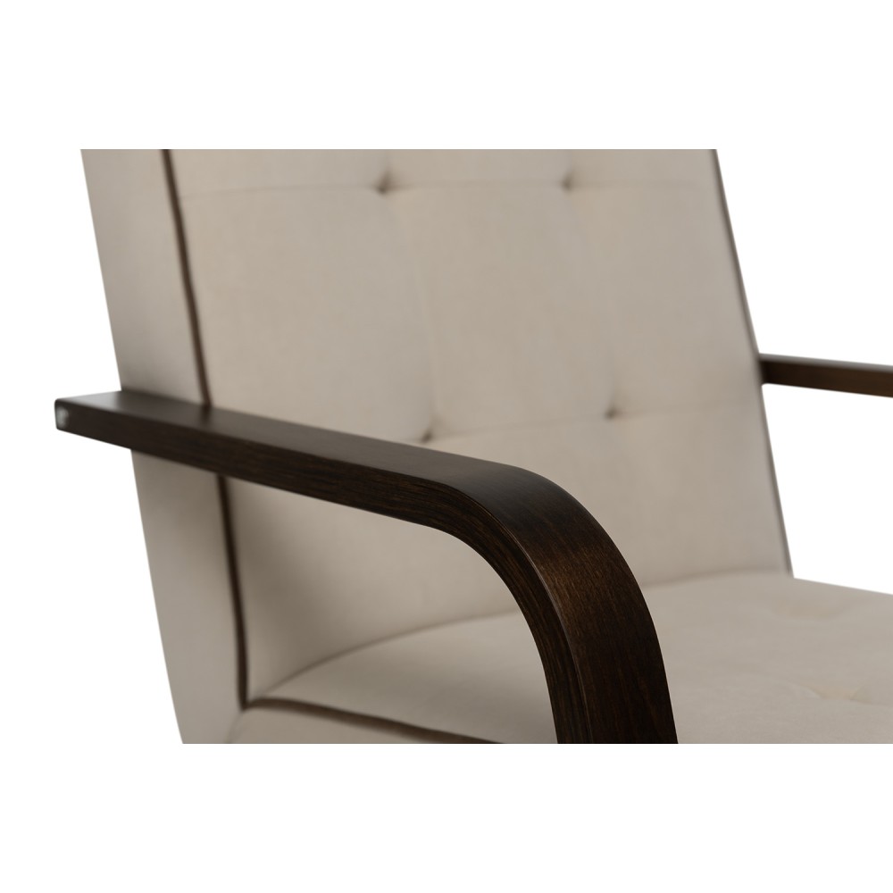 Плавно изогнутые подлокотники подчеркивают лаконичный вид компактного изделия, гармонично вписывающегося в интерьер как небольшой квартиры, так и просторного частного дома.