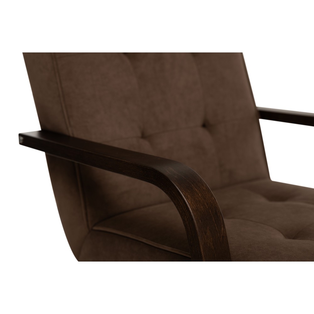 Плавно изогнутые подлокотники подчеркивают лаконичный вид компактного изделия, гармонично вписывающегося в интерьер как небольшой квартиры, так и просторного частного дома.
