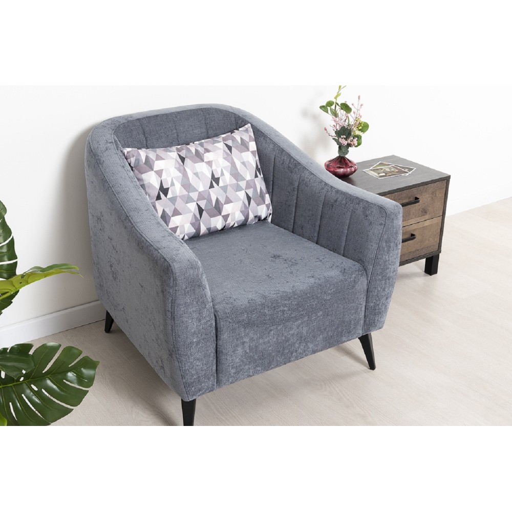 Компактное и удобное кресло на высоких металлических опорах станет ярким акцентом в вашем интерьере или дополнит диван-книжку Наоми. Широкие подлокотники и мягкая приспинная подушка обеспечивают комфорт во время отдыха с книгой или чаепития, а также просмотра фильмов.