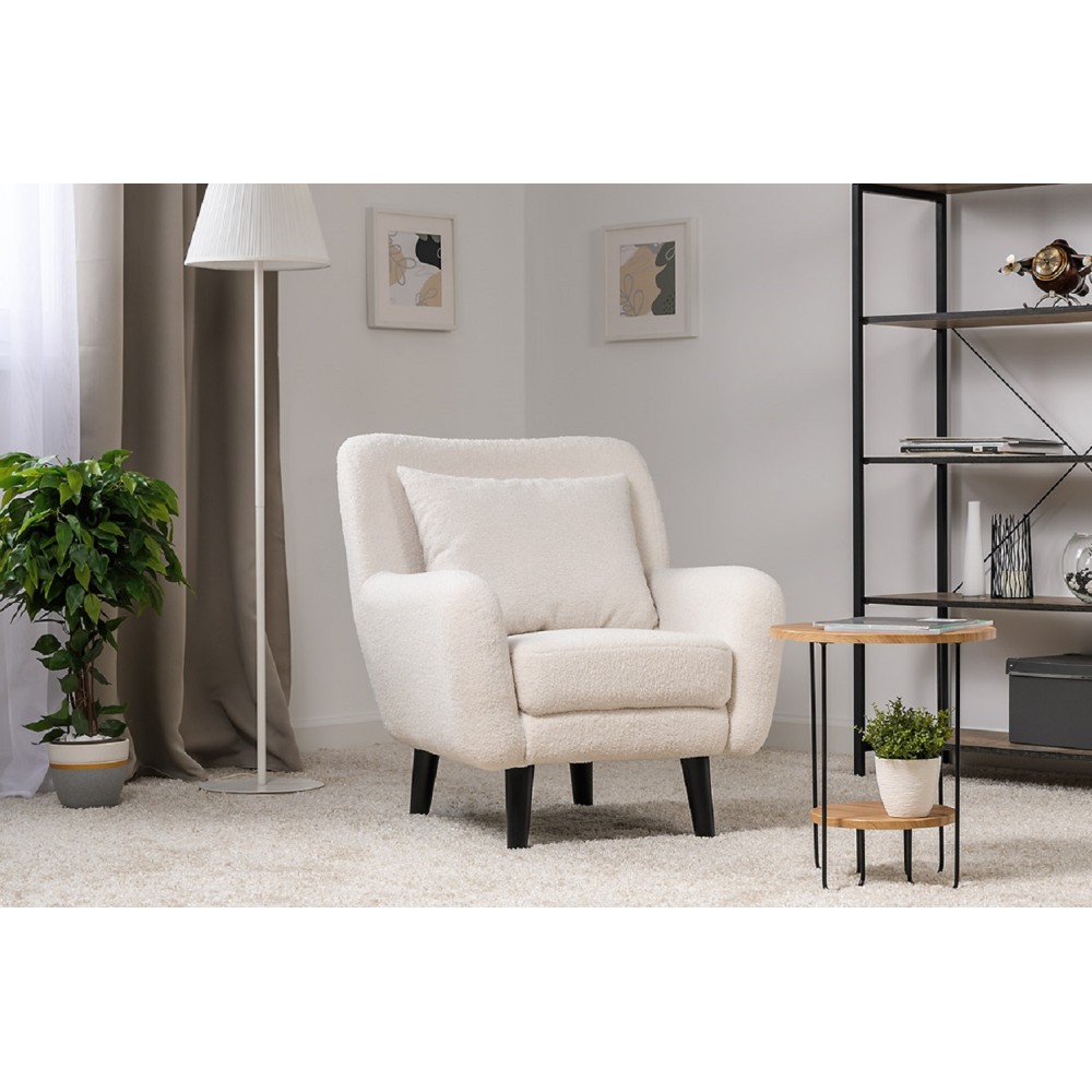 Кресло Шон — идеальный выбор для тех, кто хочет создать уютный уголок для отдыха. Его мягкая спинка обеспечивает комфорт, а небольшие размеры позволяют разместить его даже в маленьких комнатах. Ткань букле придаёт креслу особую мягкость и теплоту. Приспинная подушка в цвет кресла добавляет завершающий штрих. Изготовлено из высококачественного велюра (Romeo), который состоит из 100% полиэстера и имеет более 80 000 циклов истирания.
