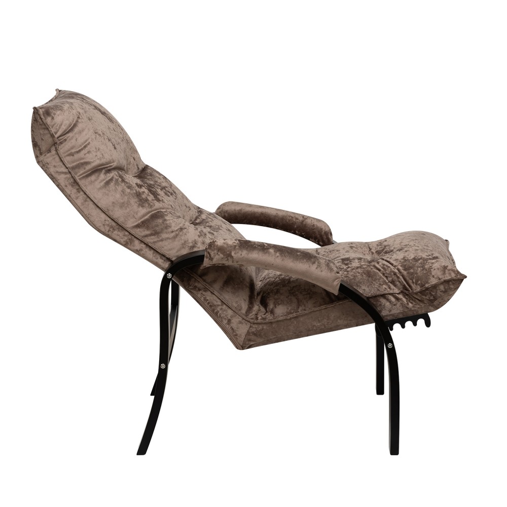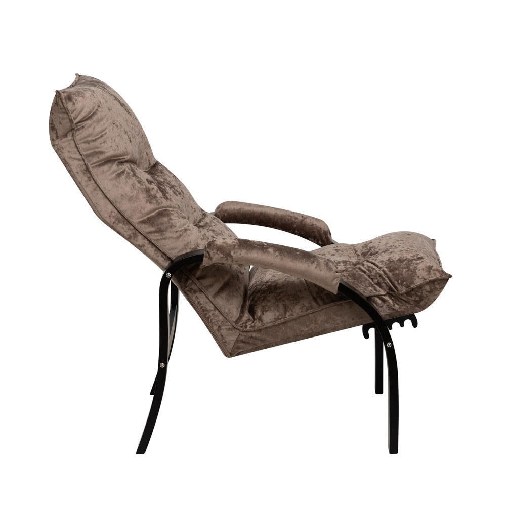 Мягкое кресло для отдыха дома и на даче Левада сделает комфортным интерьер комнаты модерн или хай-тек. Стильные кресла трансформеры из гнутоклееной коллекции мягкой мебели Leset имеют характерный силуэт, функциональны и компактны, поэтому популярны. Кресло-стул с подлокотниками и уютным сиденьем уместно в спальне, гостиной, прихожей, на балконе, в закрытой дачной беседке. У основания кресло раскладное оснащено механизмом гребенка, за счет чего одним движением спинка переключается в 4 положения. Этим модель напоминает шезлонг, но Левада Leset -полноценное интерьерное кресло для отдыха: современный дизайн, изящный деревянный каркас под итальянским лаком, велюровый чехол, наполнитель из эластичного пенополиуретана. Накладки на подлокотниках снимаются для чистки, приспинная подушка декорирована пуговицами. Эргономичное каркасное кресло раскладушка выдержит до 120 кг. Регулируемое кресло позволит расслабиться как на диване, это чудесный подарок в новую квартиру друзьям.