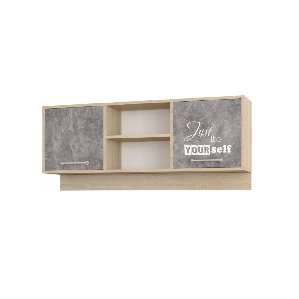Спальня Колибри Лофт навесная секция дуб сонома/ателье светлое+акрил белый