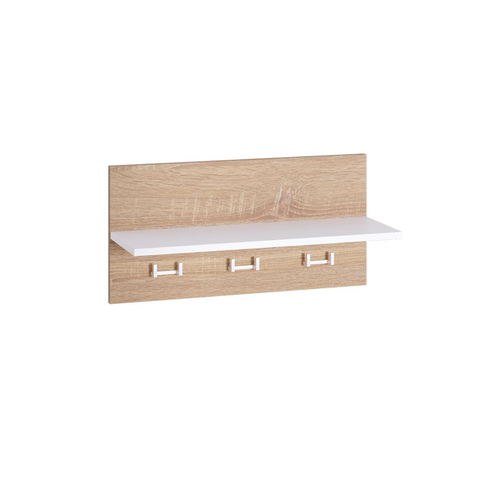 Полка-вешалка «Куба 10.123» — это удобное и стильное решение для хранения одежды в небольшой прихожей. Она представляет собой компактную настенную конструкцию с панелью, полкой и тремя стильными пластиковыми двухрожковыми крючками. Эта полка-вешалка является частью коллекции мебели для прихожих «Куба», которая отличается практичностью, удобством и элегантностью дизайна.