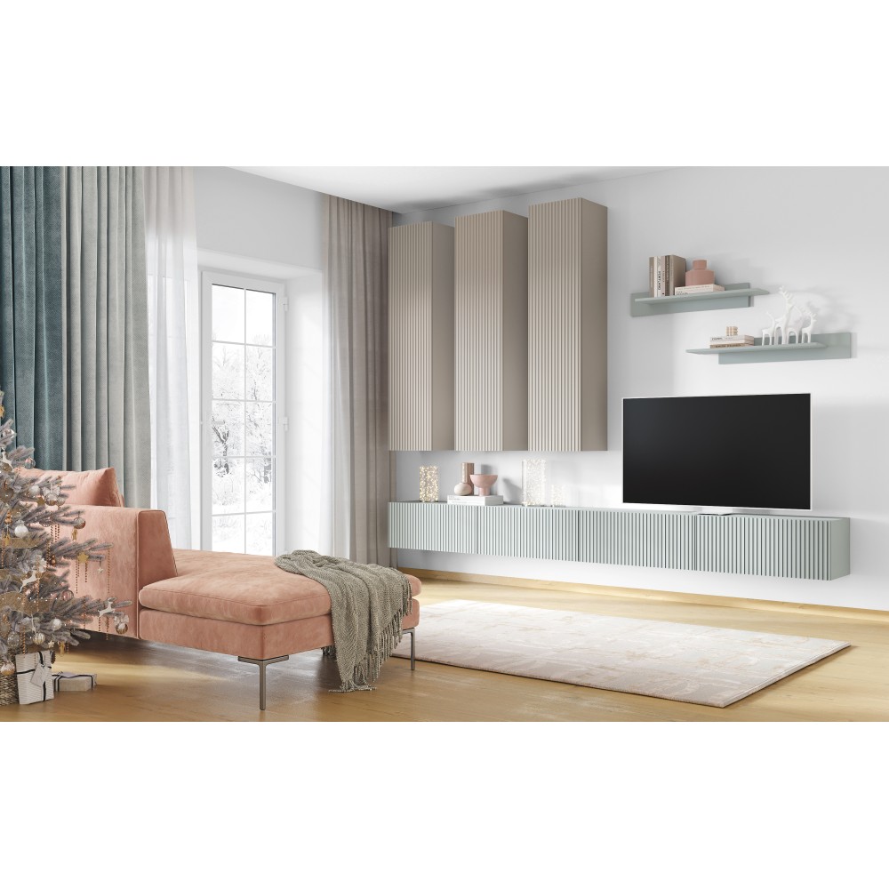 Полка Оливия открытого типа станет отличным дополнением к современному мебельному гарнитуру в гостиной или спальне.