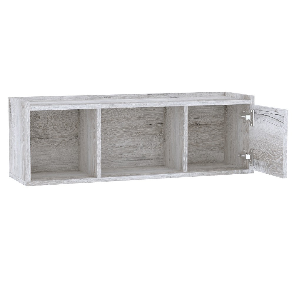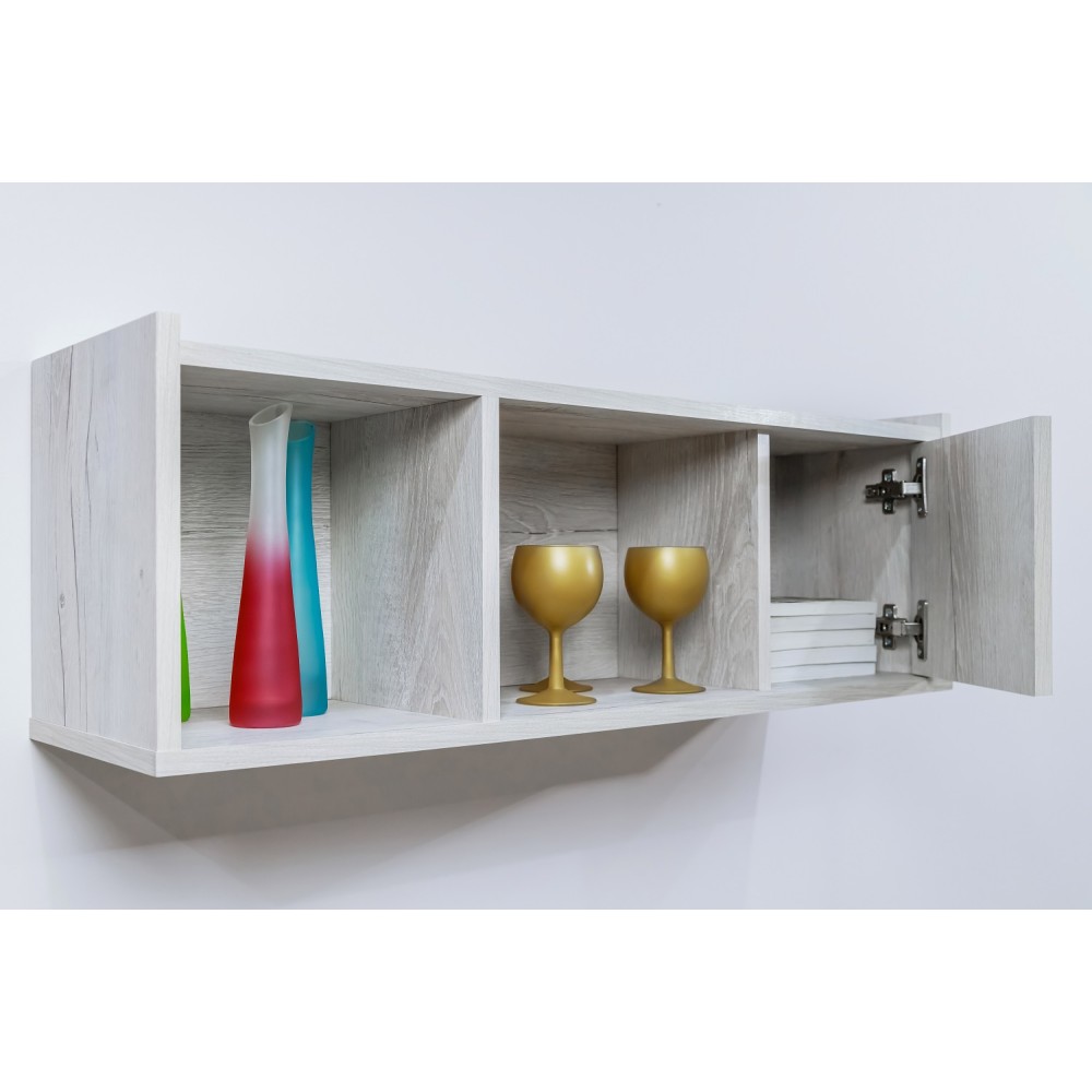 Компактный навесной шкафчик с открытыми и закрытыми нишами - удобный способ настенного хранения самых разных вещей. Такую навесную полку рекомендуем использовать как функциональную надстройку для тетрадей, книг и учебников над письменными столами Флекс 15 и 115 или над комодом Флекс 6. Универсальный модуль Флекс 11 Полка навесная собирается как на левую, так и на правую сторону.