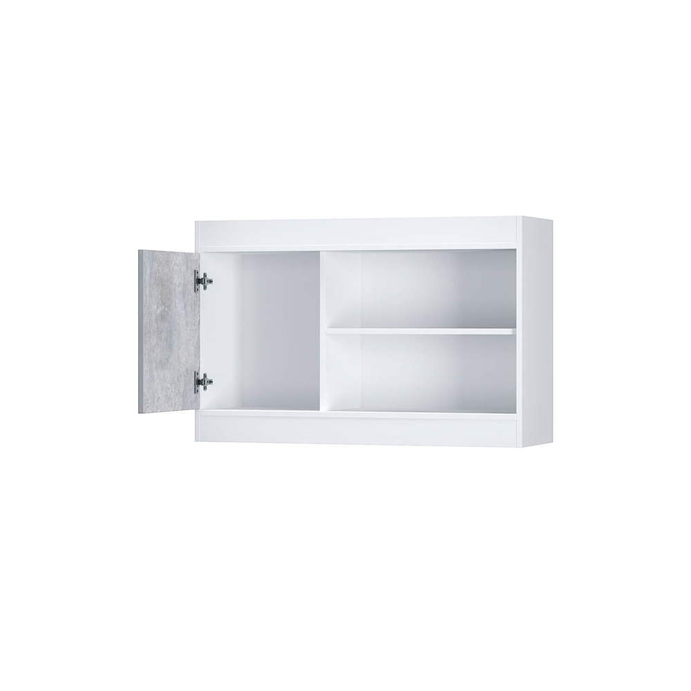 Навесная полка Паскаль из одноименной коллекции мебели позволит организовать дополнительное местохранение. Модель выполнена из ЛДСП в цветах белый и цемент светлый, состоит из двух открытых ниш и распашной створки. С помощью полки можно оформить кабинет или рабочее пространство для учебы.