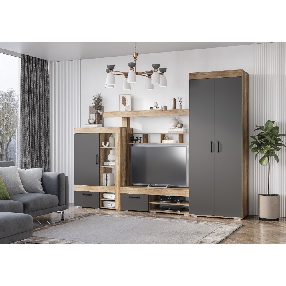 Новая модульная коллекция Прима в актуальном декоре дуб каньон/графит удачно впишется в современную обстановку Вашей квартиры и позволит организовать грамотное хранение вещей в гостиной и спальне. Приятный древесный оттенок дуб каньон наполнит окружающую обстановку теплом и уютом. Навесная полка открытого типа АН-01 визуально облегчит мебельный гарнитур и добавит места для предметов декора и книг.