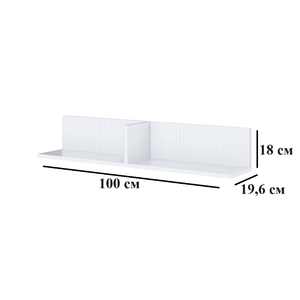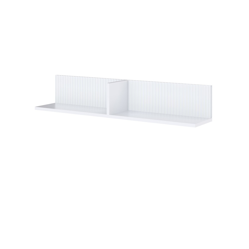 Открытая навесная полка Сириния впишется в современный интерьер гостиной и украсит ее. Привнесите комфорт и уют, разместив на полке памятные аксессуары, фотографии или цветы. Корпус ЛДСП, белый, МДФ в пленке ПВХ, белый снег.