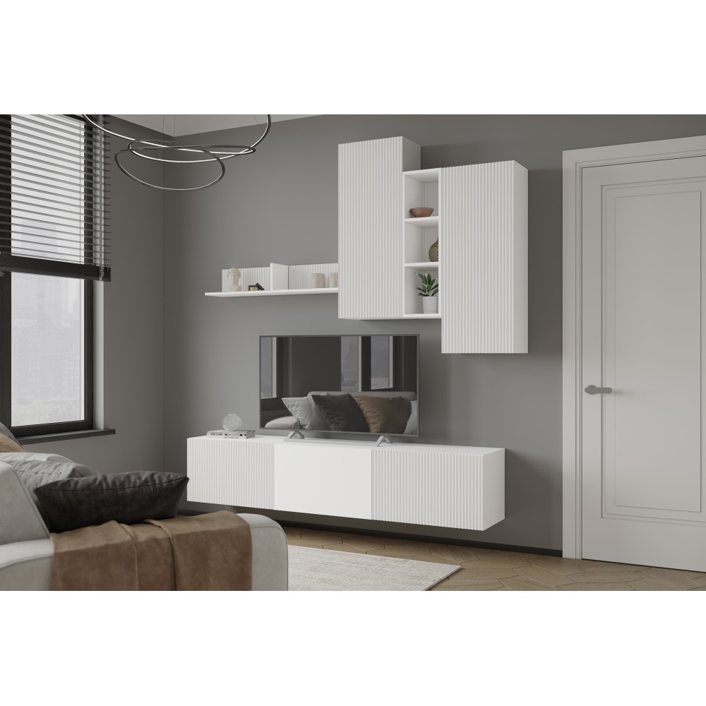Гостиная Сириния Полка навесная белый/МДФ белый снег