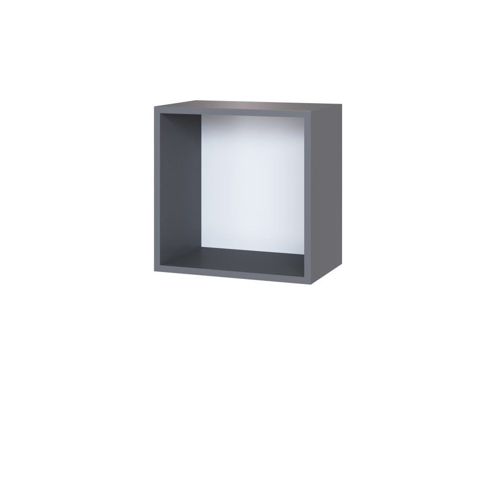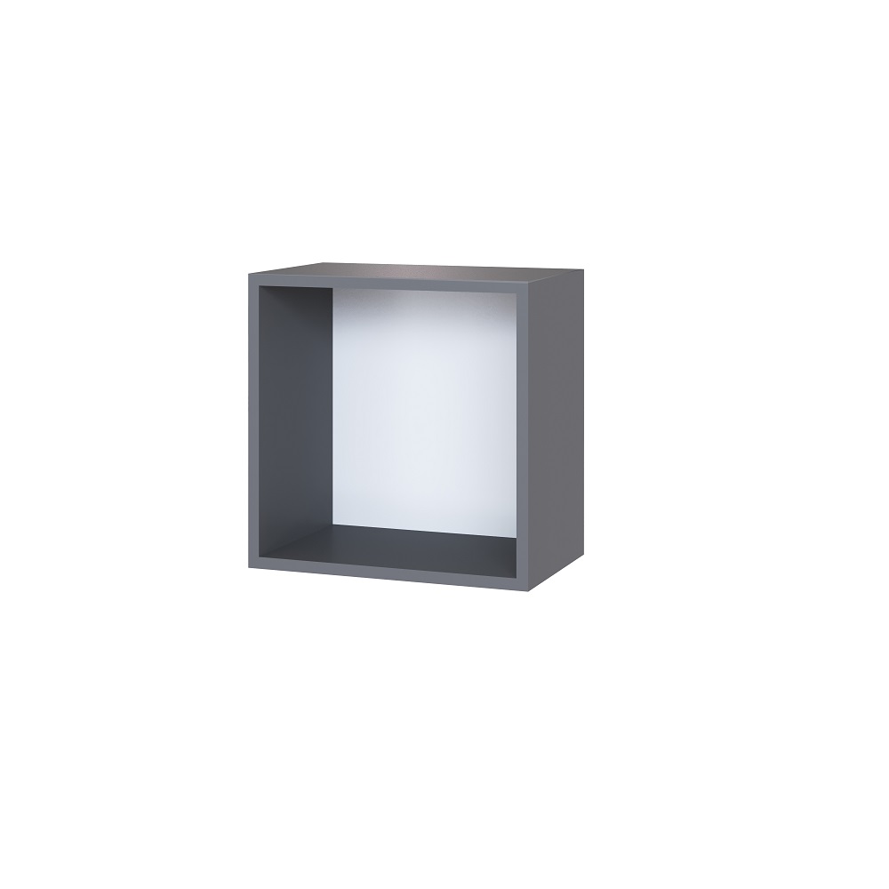 Полка навесная Сириния Куб 1 позволит оптимизировать пространство комнаты, не загромождая его. Корпус ЛДСП, серый графит, фасад МДФ в пленке ПВХ, пудра.