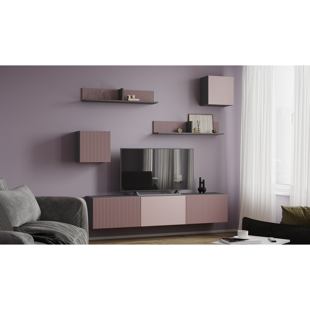Гостиная Сириния Куб 1 серый графит/МДФ пудра