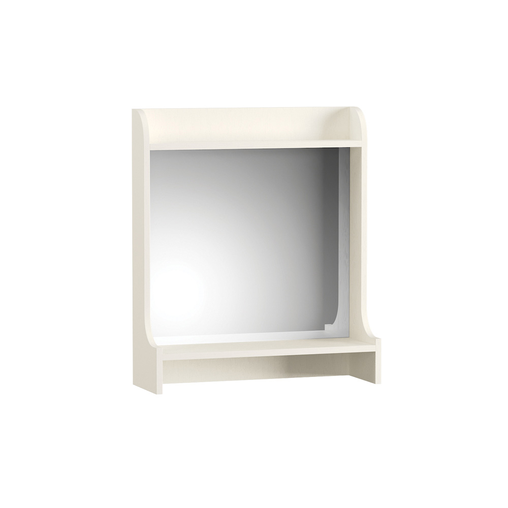 Оригинальная полка Ливерпуль с большим зеркалом, двумя открытыми полочками и нишей - удобная и эффектна в композициях. Боковые стеночки полки имеют фигурный силуэт, края зеркала украшены фацетом.