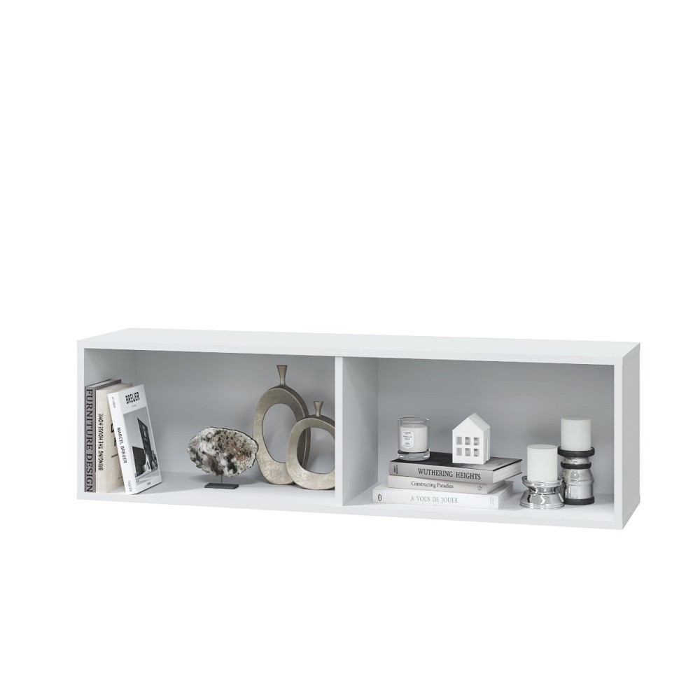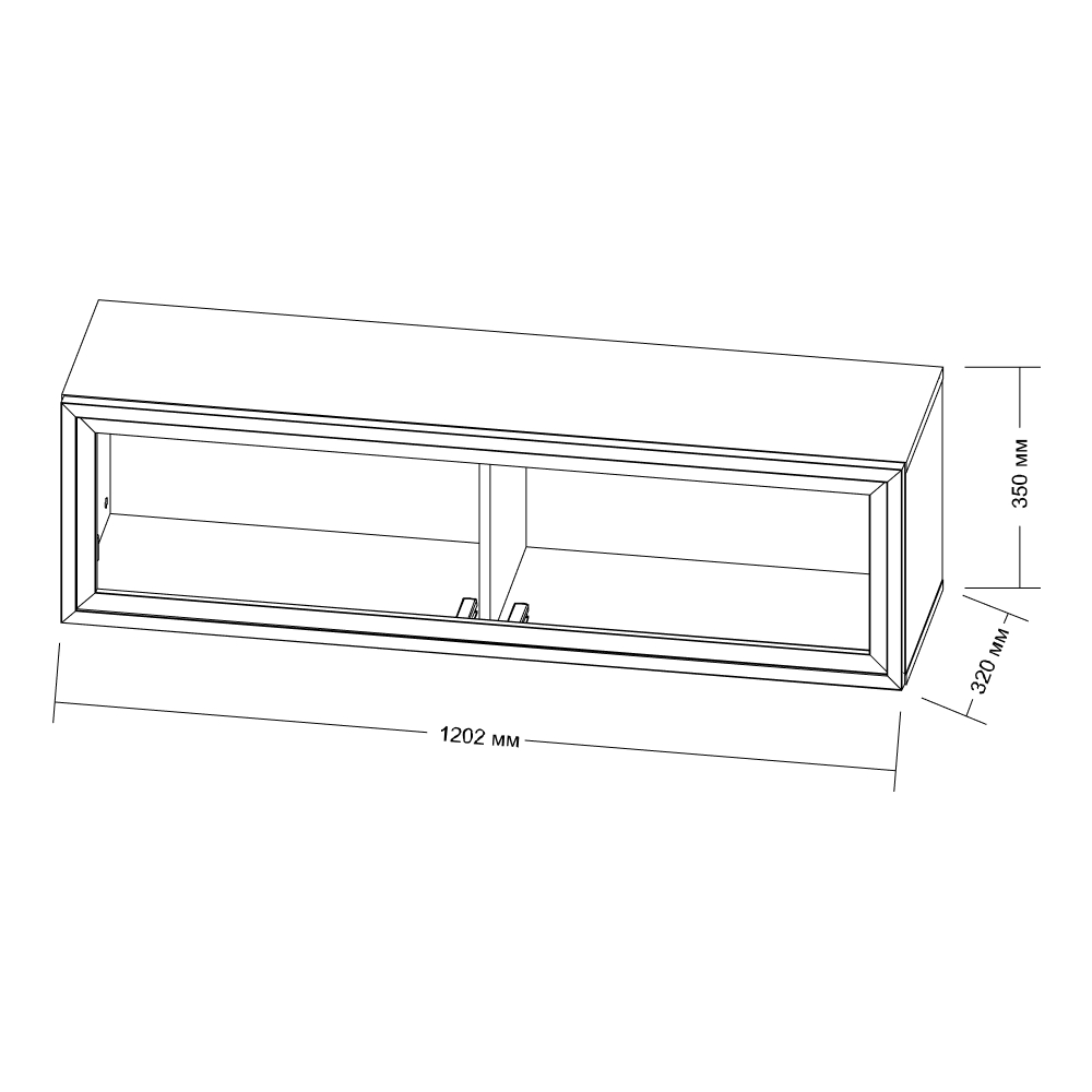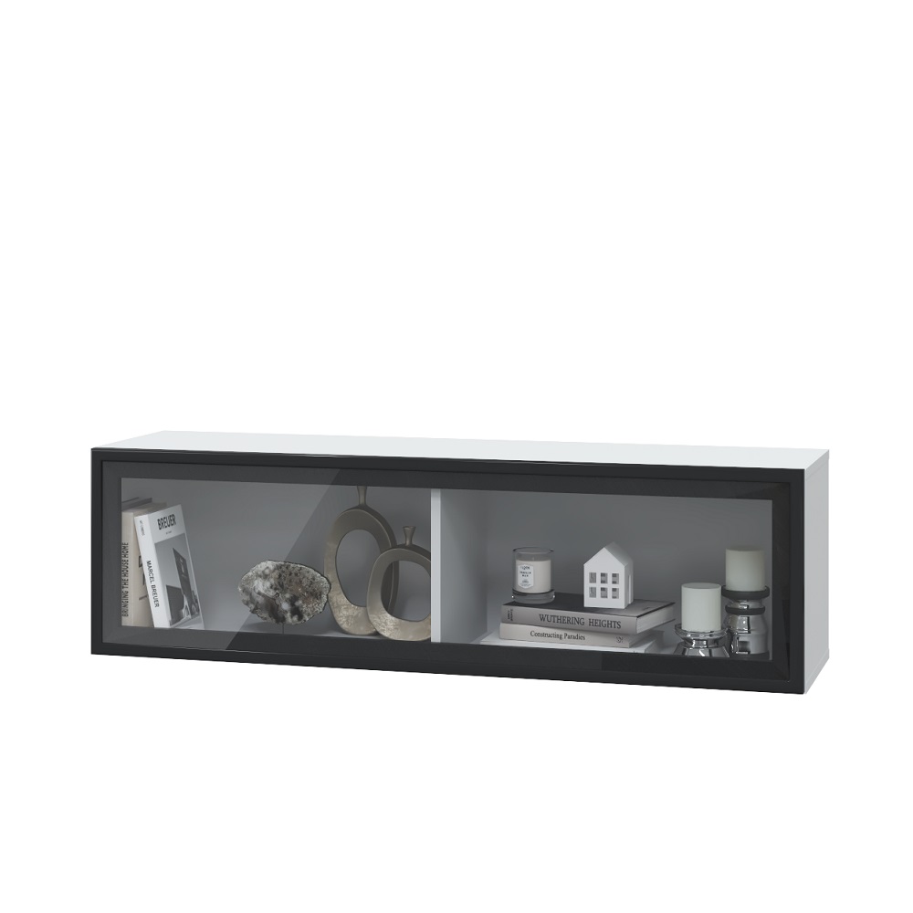 Шкаф навесной горизонтальный со стеклом - отличный вариант для хранения книг, аксессуаров и памятных статуэток в гостиной.