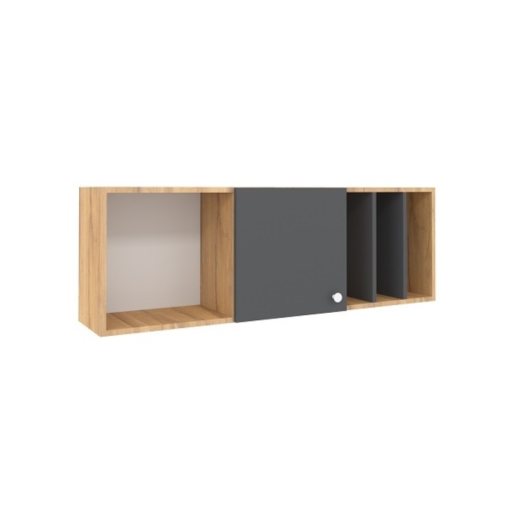 Навесной шкаф с открытыми и закрытыми нишами и полками - отличный вариант настенного хранения различных вещей. Отличие модуля состоит в том, что его можно подвесить как вертикально, так и горизонтально. В вертикальном положении навесной шкаф прекрасно сочетается с письменным столом.