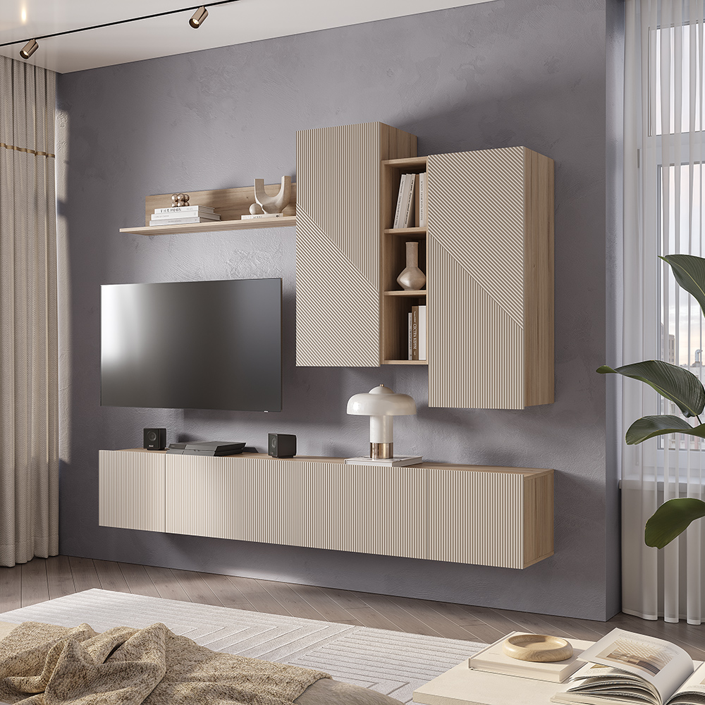 Шкаф навесной с полками Эмилия состоит из двух закрытых секций, открытой секции и навесной полки. Лаконичная конструкция модели украшена изысканной фрезеровкой фасадов, а приглушенная цветовая гамма поможет легко вписать модуль в современный интерьер. Разнообразие моделей позволит подобрать идеальный комплект для вашей гостиной.