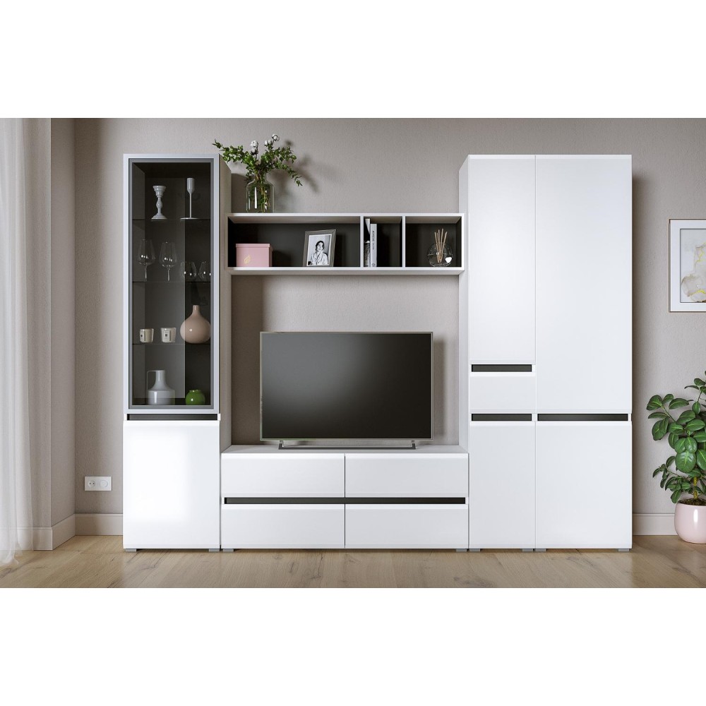 Полка Сидней 15.57 — это современное, стильное и функциональное решение для гостиной. Её габариты составляют 130 см в ширину, 27,2 см в глубину и 30,5 см в высоту. Лаконичные белые глянцевые фасады придают полке свежий и лёгкий вид, а чёрная задняя стенка подчёркивает её наполнение.