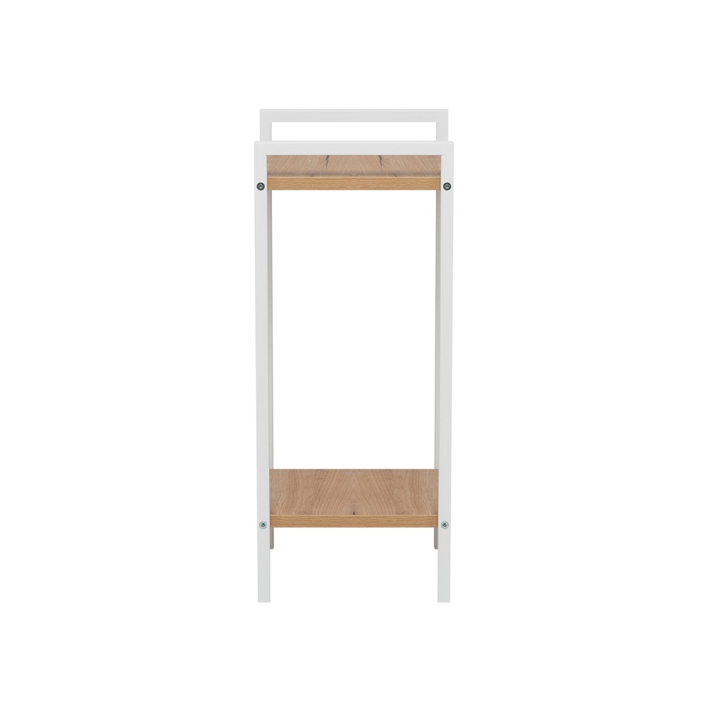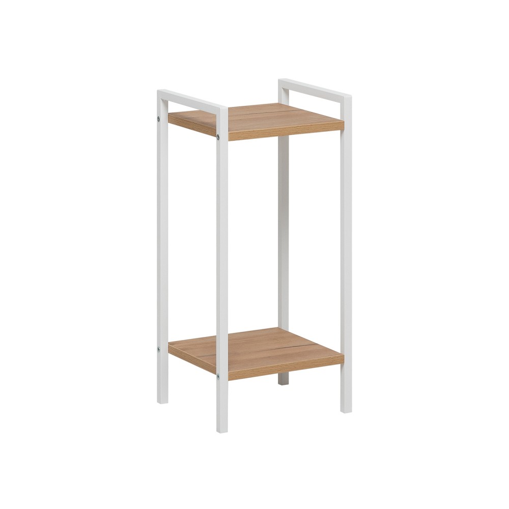 Созданный из прочного металла и качественной ЛДСП, он идеально дополнит интерьер любого помещения – от дома до офиса. Два открытых уровня выдерживают до 20 килограмм каждый, обеспечивая комфортное хранение или оригинальное расположение комнатных растений.