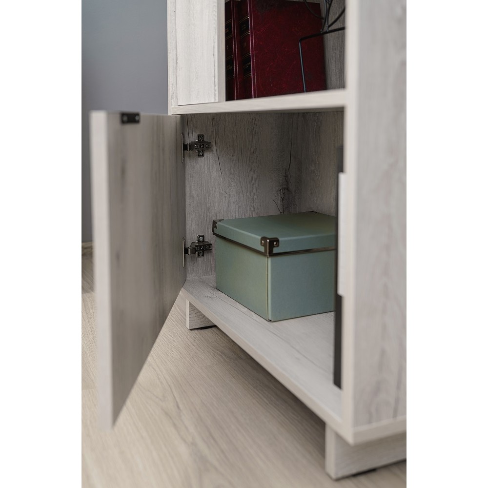 Открытый стеллаж с распашным фасадом и отделением с полками ФЛЕКС 25 в светлом цвете Дуб Шавиниган выполнен из ЛДСП класса эмиссии Е1 толщиной 16 мм. Такая открытая этажерка дополнит систему хранения в любой комнате: в гостиной, спальне, молодежной и прихожей. Бортики вверху по краям в одном стиле с коллекцией Флекс. Предусмотрена правосторонняя и левосторонняя сборка модуля.