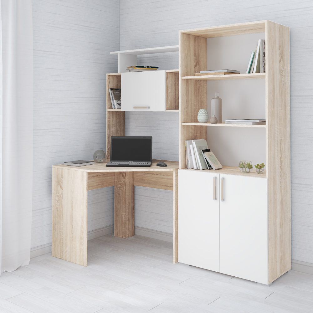 Стеллаж к компьютерному столу - это удобное и функциональное дополнение, которое позволяет организовать пространство и держать все необходимые вещи под рукой. Он имеет несколько открытых полок, на которых можно разместить книги, документы, аксессуары для компьютера и другие предметы, за фасадами можно скрыть более габаритные предметы. Данный стеллаж отлично подойдет к компьютерному столу Квартет.
