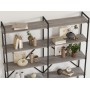 Полки изготовлены из ЛДСП толщиной 16 мм. Каркас выполнен из цельносварного стального профиля черного цвета с порошковым покрытием, ширина профиля - 20*20 мм.