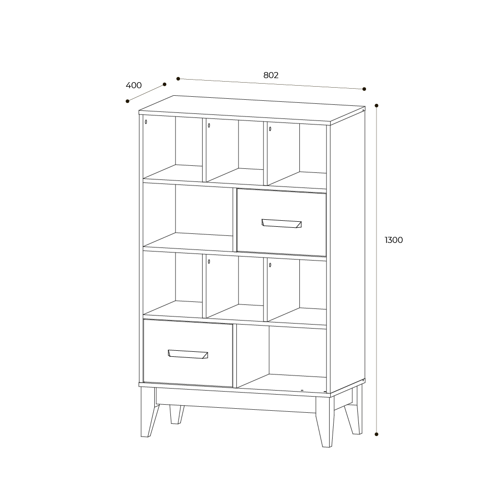 Стеллаж Скандика дополнит интерьер в любой комнате. На его полках вы сможете разместить книги, предметы декора, рамки с фотографиями и даже домашние цветы. Данная модель оснащена двумя выдвижными ящиками.