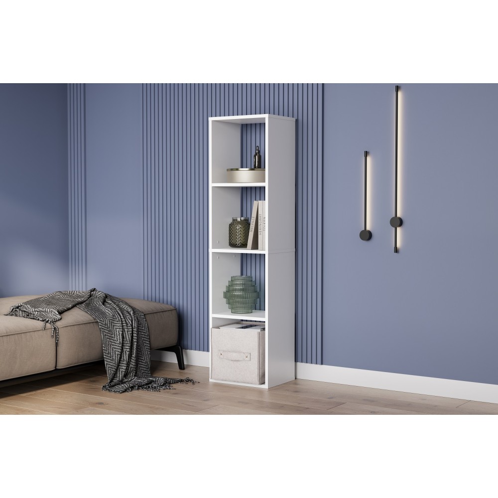 Стеллаж СТЖ-7 — это стильный и функциональный элемент интерьера, который станет отличным дополнением к вашему дому или офису. Он выполнен в белом цвете с текстурным покрытием, что придаёт ему современный и элегантный вид.