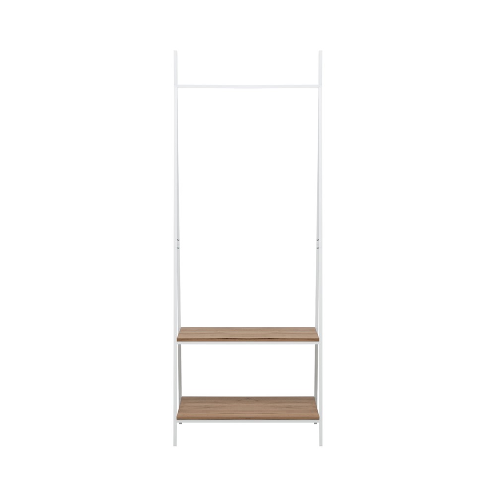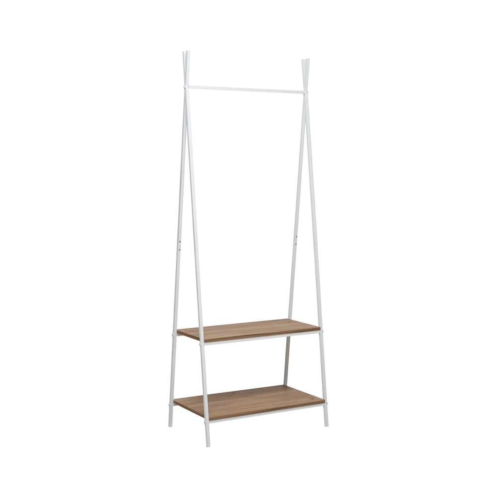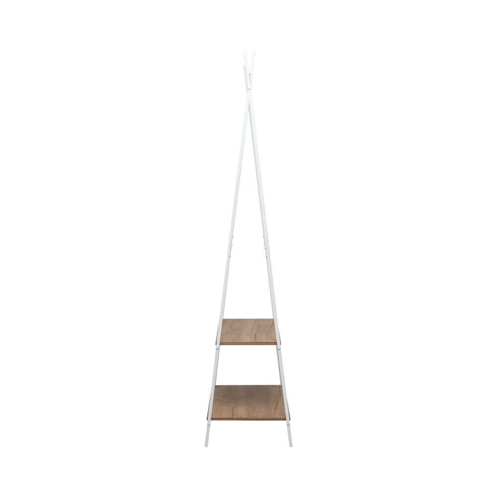 Минималистичный дизайн в стиле лофт придаст интерьеру особый стиль и продуманность. Высокая, но узкая конструкция идеально подходит для небольших пространств, при этом позволяя разместить более 10 вешалок. Два уровня полок помогут систематизировать обувь, коробки и аксессуары.