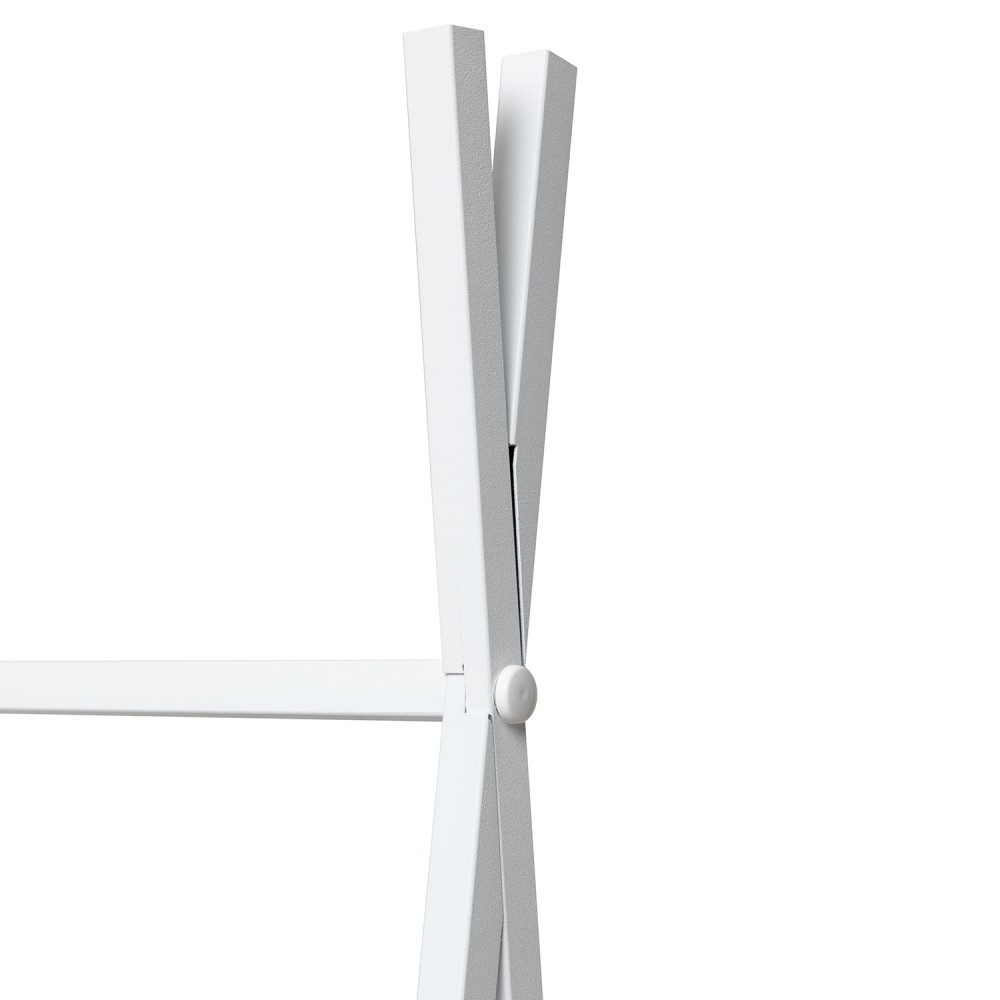 Прочная металлическая рама оснащена удобной перекладиной для плечиков и двумя вместительными полками для обуви и сумок. Всё необходимое всегда под рукой. Вешалка собирается за 10 минут и отличается устойчивостью даже при интенсивной ежедневной эксплуатации.