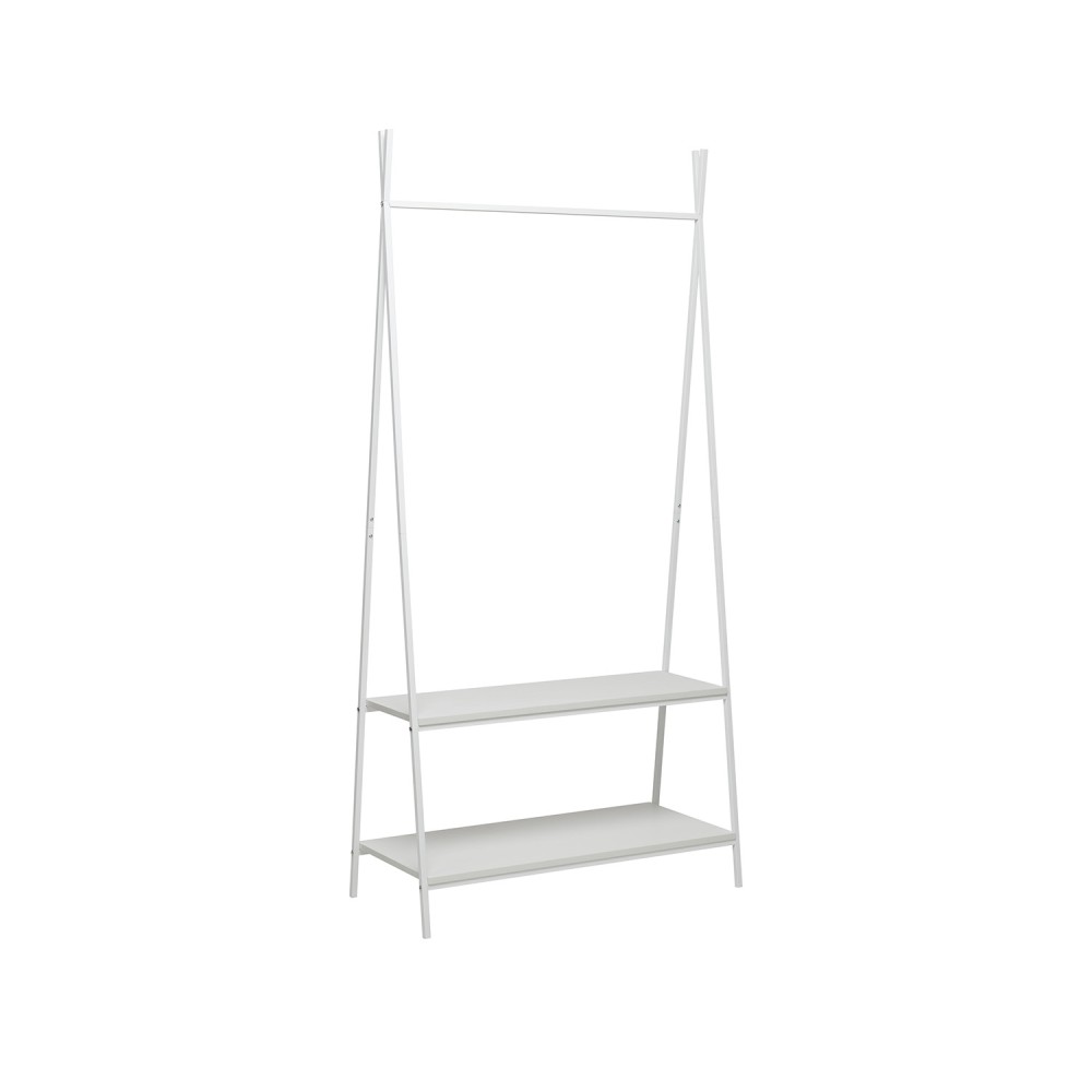 Прочная металлическая рама оснащена удобной перекладиной для плечиков и двумя вместительными полками для обуви и сумок. Всё необходимое всегда под рукой. Вешалка собирается за 10 минут и отличается устойчивостью даже при интенсивной ежедневной эксплуатации.