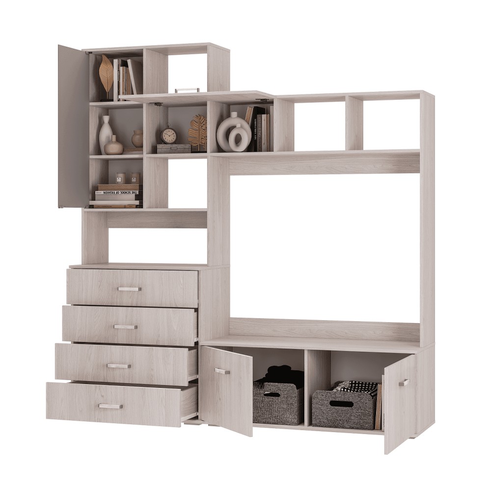 Всеми любимая коллекция мебели для гостиных Белла теперь в новом, трендовом декоре "ясень белый"! Функциональные модули для организации ТВ-зоны и хранения одежды и вещей представлены в приятном светлом декоре, имитирующем текстуру натурального дерева. За счет разнообразия и небольшой глубины модулей Вы сможете грамотно обустроить гостиную даже в малогабаритке, квартире-студии и помещении с нестандартной планировкой. Например, комплект 1 состоит из центральной секции Белла и шкафа-пенала с полками и стационарной штангой.